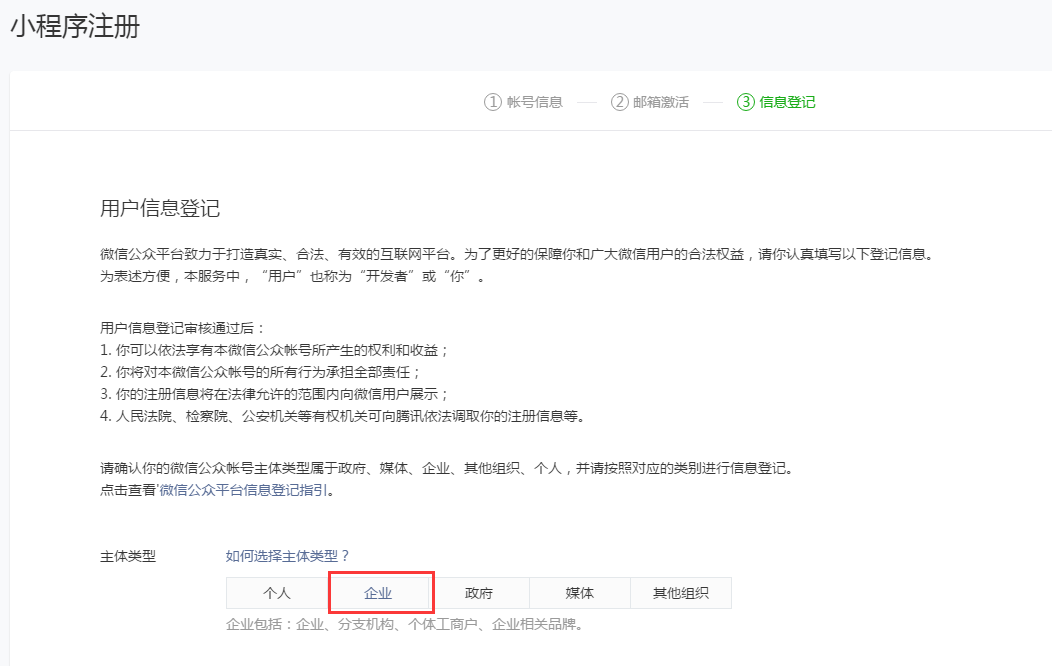 第五步:選擇注冊主體,這里以【企業(yè)】主體為例。